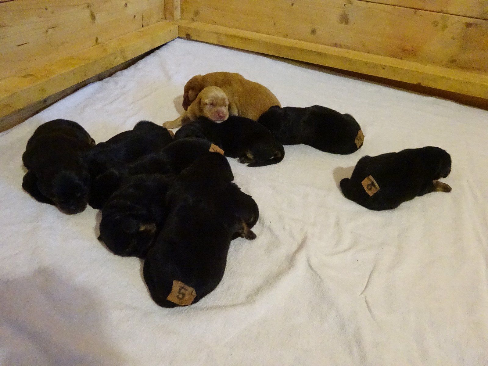 Der K-Wurf von der Dünnebecke ist da. Am 08.06.2021 haben 10 Welpen (6 Rüden und 4 Hün-dinnen) von Georgina von der Dünnebecke und Iceman vom Ellenbach das Licht der Welt erblickt. Hier schon mal ein paar Bilder von den kräftigen und gesunden Wonneproppen.